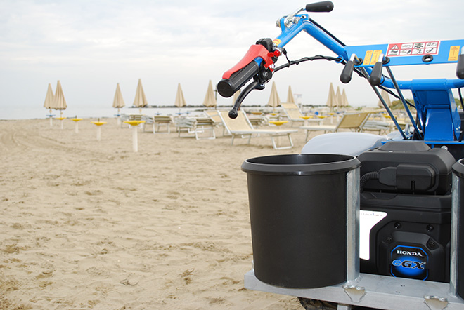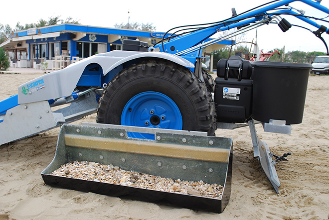 The new ELECTRIC beach cleaning machines maintain the vibrating screen working system ensuring correct, effective and silent cleaning of the beach, thanks to the reduced noise and lower vibrations guaranteed by the Honda GXE2.0H electric motor.